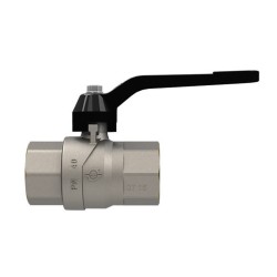 Válvula a esfera conex 1" X 1".Macho-Racord con mando mariposa disponible en azul y rojo.